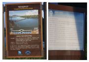 양근성지에서 조금만 더 내려가면 양강섬이 나온다. 양강섬으로 연결된 부교와 청개구리의 유래에 대한 설명, 양강섬 순례길에 대한 설명을 볼 수 있다. 오후에 가니 낮에 스타벅스에서 본 풍경보다 더 예쁘게 보인다.